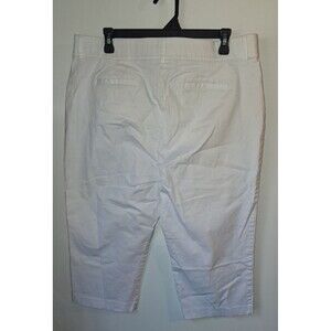 The Briggs White Straight Leg Capri Pants in size 16 are versatile pants suitable for travel, casual outings, and business meetings. Made from a blended fabric of spandex, cotton, and cotton blend, these pants feature a mid-rise waist with a flat front and a zip closure. With a 20-inch inseam and a straight leg style, they offer a comfortable fit with added stretch for ease of movement. These stylish capri pants are machine washable and come in a solid white color, making them a staple piece for any wardrobe.
