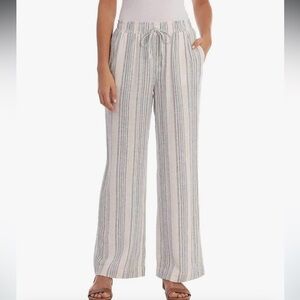 Briggs White with Blue Stripes Linen Blend Wide-Leg Pull on Pants
