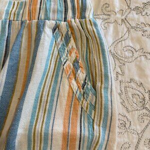 Briggs Women's Linen Blend Pull-On Shorts with Pockets Size Medium Blue Stripe.