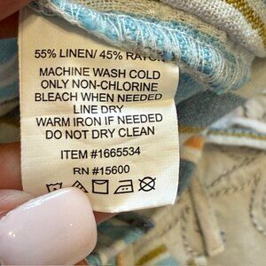 The Briggs Women's Linen Blend Pull-On Shorts in size Medium are perfect for various occasions such as travel, parties, or casual wear. Made from a comfortable and stylish linen blend fabric in a blue striped pattern, these shorts feature a pull-on closure for easy wear. With practical pockets, a drawstring detail, and a mid-rise fit, these shorts are both functional and fashionable. Ideal for summer, fall, and spring, these versatile shorts are machine washable and designed for activities like walking, beach outings, or even dancing. Made in Vietnam, these shorts add a colorful and breathable option to any woman's wardrobe.