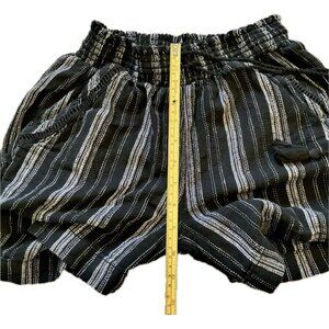 Briggs Women’s Shorts Black Striped Linen/Rayon Blend Elastic Waist Size S Boho