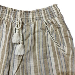 Briggs Women’s Size SMALL Linen/Rayon Shorts Tan/Blue/Cream Striped 4 Pocket