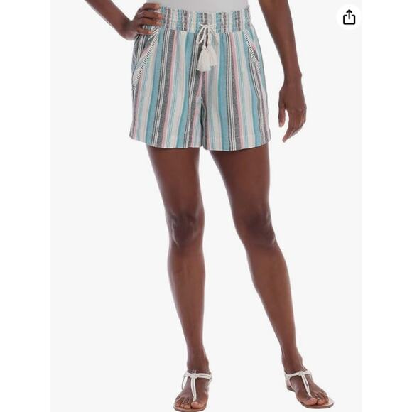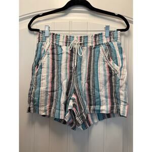 Briggs Women’s Striped Linen Blend Pull On Summer Shorts Size S Blue White