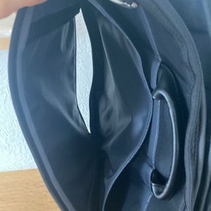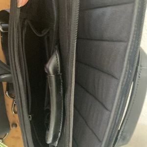 1600D ballistic nylon outer fabric resists wear, moisture, dirt and abrasion; genuine top-grain leather touchpoints and accents.