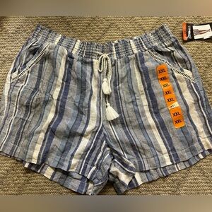 Briggs linen blend lightweight shorts pocket front tassel nautical blue