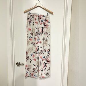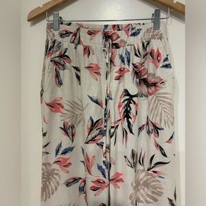 Briggs tropical floral print wide leg Linen blend pants pockets beige tan size S