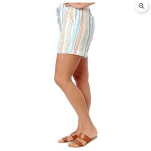 Briggs Women's White/Aqua/Orange Linen/Rayon Drawstring Shorts w Pockets