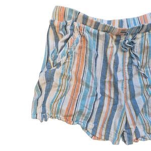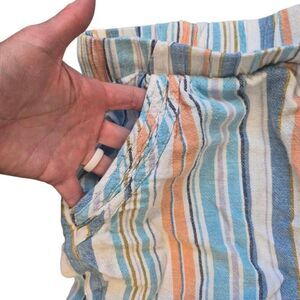 Briggs Women's White/Aqua/Orange Linen/Rayon Drawstring & Elastic Waist Shorts w Pockets EUC sz L