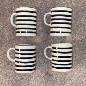 Set of four hand painted and hand crafted striped mugs by Brigham