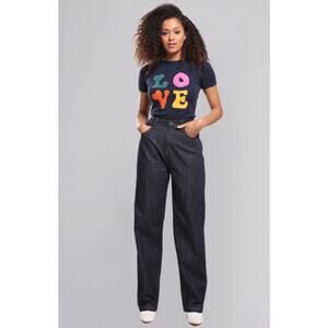 Meet our Bijou Rainbow Jeans! They are a pair of high-waisted jeans with a regular cut, and feature a rainbow detail at the back.