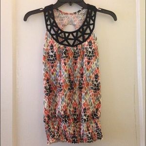 Bright Aztec Top with Cut-Out Collar