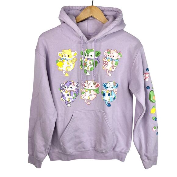 Hot Topic Bright Bat purple pullover sweatshirt with cute cows on the front. Some very minor pilling but overall in very good condition!