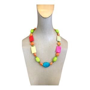 Bright Beaded Multi Shaped Pink, Blue, Orange Beads Lightweight Summer Necklace