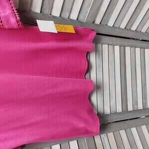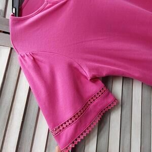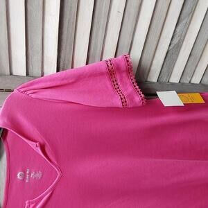 Make a stylish warm-weather fashion statement in our solid interlock knit top detailed with a split neck and elbow-length sleeves.
