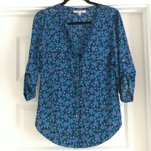 Bright Blouse Heavy Metal buttons Hawthorn Size Small 100% Polyester Hand Wash Cold Bust 19” Length 28” Sleeve Length 14”