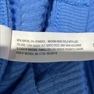 Vibrant ribbed cardigan with button-front closure. Lightweight knit with long sleeves. Classic V-neck silhouette. Bright blue color for easy styling.
