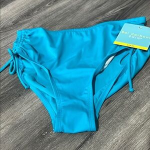 Stylish bright blue swim bottoms with side ties. Perfect for a day at the beach.
