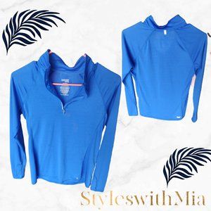This top is so cute, the material is perfect for working out in or just wearing when the weather is a little colder. The zipper is functional and there are thumb holes.