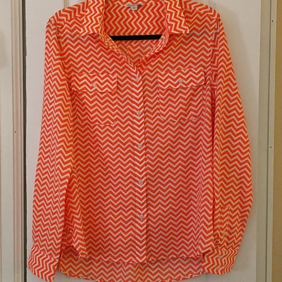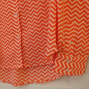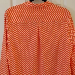 Neon Orange/Coral and White Chevron pattern button blouse. 2 chest pocket detail, worn 2 times! EUC