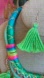 Bright Colored Green Tassel Necklace & Earrings Set | 293