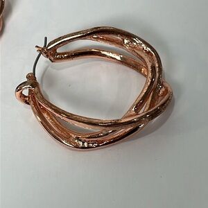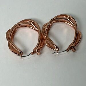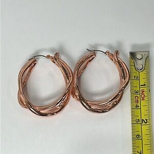 Bright Copper Tone Thick Twist Hoops Earrings Bold Shiny Statement OS