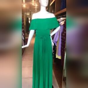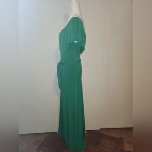 Bright Emerald Kelly Green Off Shoulder Maxi Dress Medium M EUC