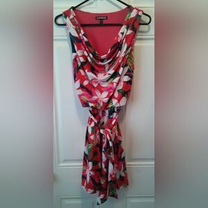 Bright Floral Express Wrap Dress with Plunging Neckline sz xs
