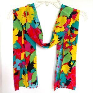 Bright Floral Silky Summer Scarf Long Skinny Rolled Edge 58x11in