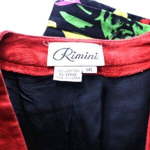 1980's Neiman Marcus Rimini Suit short sleeve jacket with red jewel buttons and matching above the knee skirt