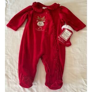 Vintage NWT Adorable Bright Future 3-6 Months Baby's First Christmas sleeper for kids featuring soft Red velvet like onesie. Has a reindeer on front with saying "My First Christmas" Snap closures