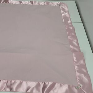 Bright Future Heirlooms Knit Blankey Pink Flower Baby Blanket Satin Trim Back.