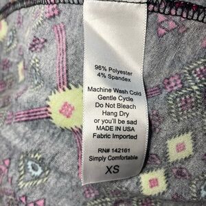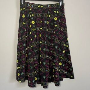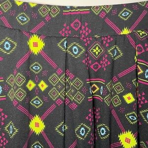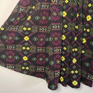 This Lularoe Madison is one of my favorites! The geometric pattern is so fun. It has a solid black background with the pattern in neon yellow/green, blue, and hot pink. It had pockets!!