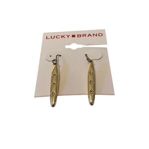 Bright Gold Tone Linear Drop Earrings w/ 3 Pave Crystals.
