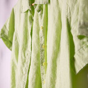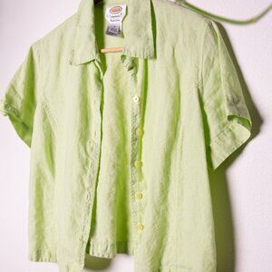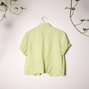 Perfect for spring and summer! Bright green, 100% linen short sleeve button up. Size M