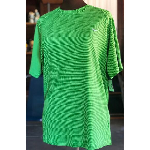 Bright green Everdri Everlast shirt with tags sz LG. Never worn but because kept in closet with other clothes, has some pulls on it. Took pictures of the ones I could find. Might be other small ones but not really visible. Though it’s technically new & never worn, I put like new as condition because of small cosmetic parts.