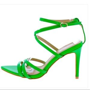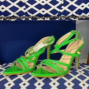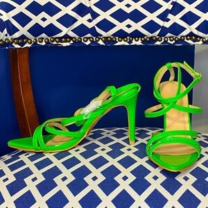 Bright Green strappy pointed open toe ankle strap heel Sz 6, 7