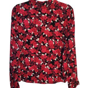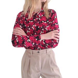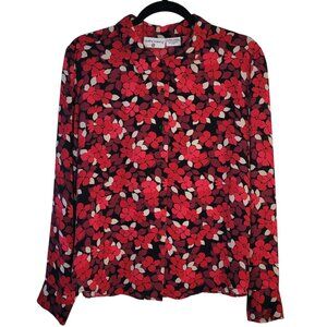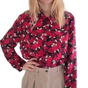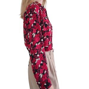 Bright Magenta/Purple Floral AOP Kathy Ireland Button-Down Blouse womens XL EUC