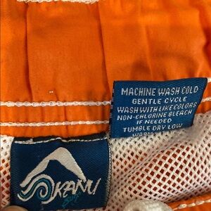 Stylish orange cargo shorts with white accents. Ideal for casual outings.
