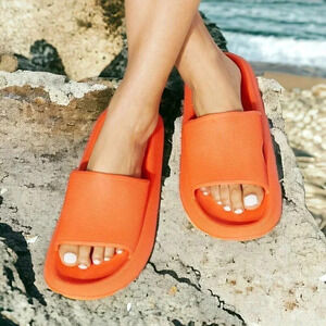 🆕️Bright Orange Open Toe Slides 🧡Comfy Pool Beach Vibes Vacation-Ready Sandals