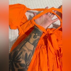 Elevate your style with this bright orange mini dress featuring charming puff sleeves. Perfect for making a statement at any event.