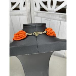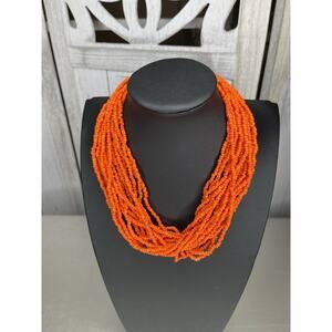 Bright Orange Seed Bead Gold Tone Multi-Strand Necklace Layered Boho