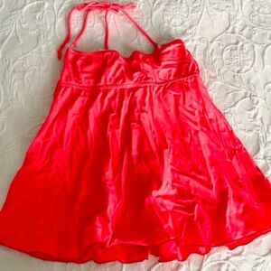 Bright Orange Layered Halter Tankini Bathing Swim Swimming Top Large
