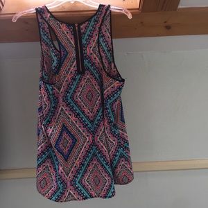 EUC bright multi color tank top with a slight high low. Has a cute zipper detail in the back. Size large.