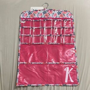 This vibrant pink jewelry organizer is perfect for keeping your accessories neatly arranged and visible. With its clear compartments, you can easily find and showcase your favorite pieces. The sturdy hanger ensures convenient storage in any closet.