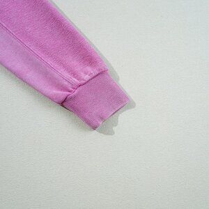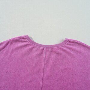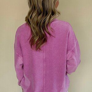 Bright Pink Solid Color Notched Neck Drop Shoulder Sweatshirt