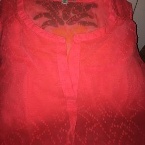 Perfect for Summer! Bright pink sheer tank top from American Eagle. The size is small, but would probably also fit like a medium. Front has a low cut V.