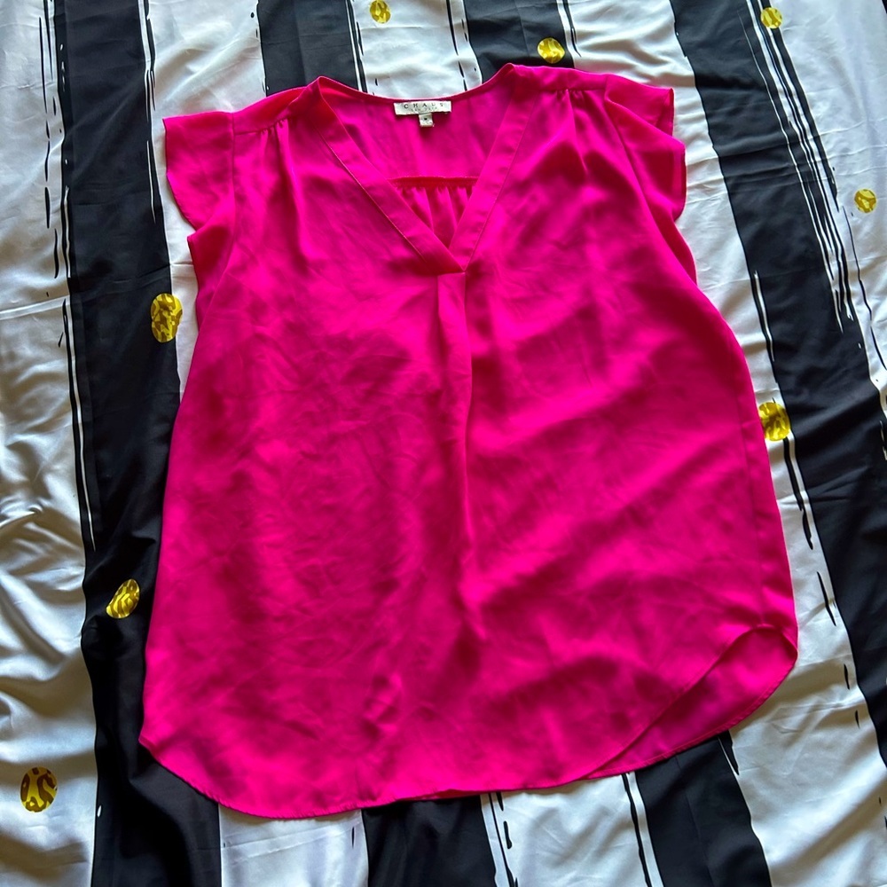 Bright and stylish pink top perfect for any occasion. Flutter sleeve, worn once Great for office, date night, girls trip
