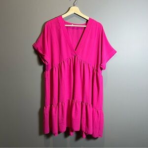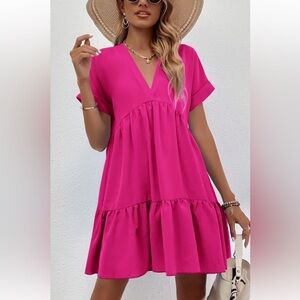 Cute Bright pink dress with a deep V-neck and tiered design. Perfect for a bold look. Only wore once