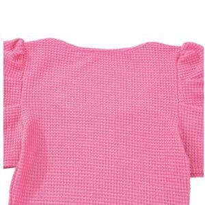 Bright Pink Waffle Knit Ruched Puff Sleeve Top New S, M, L,