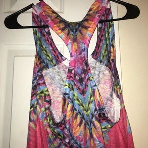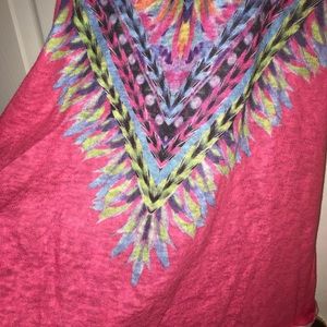 Razorback tank, pink, with feather print. Size large.